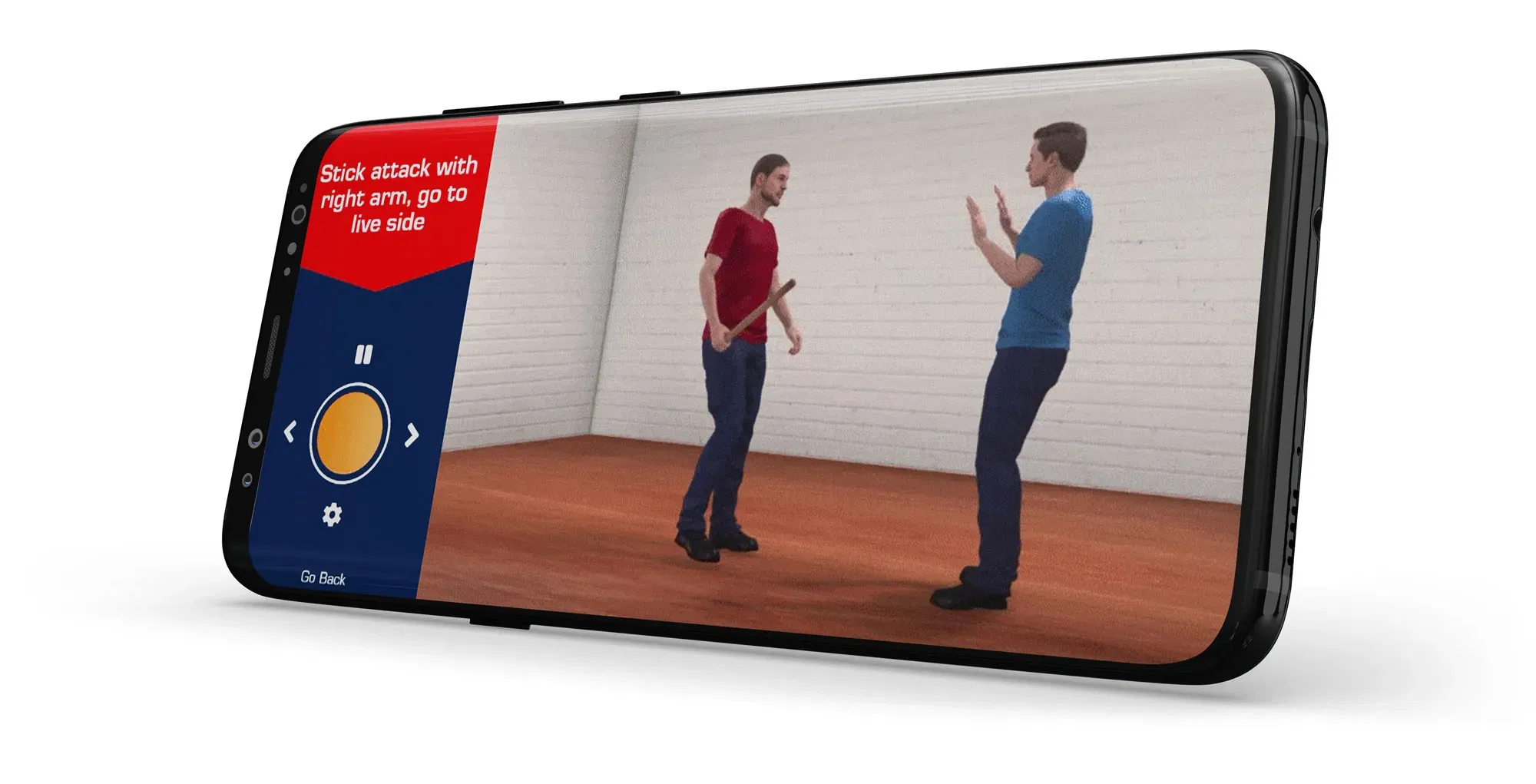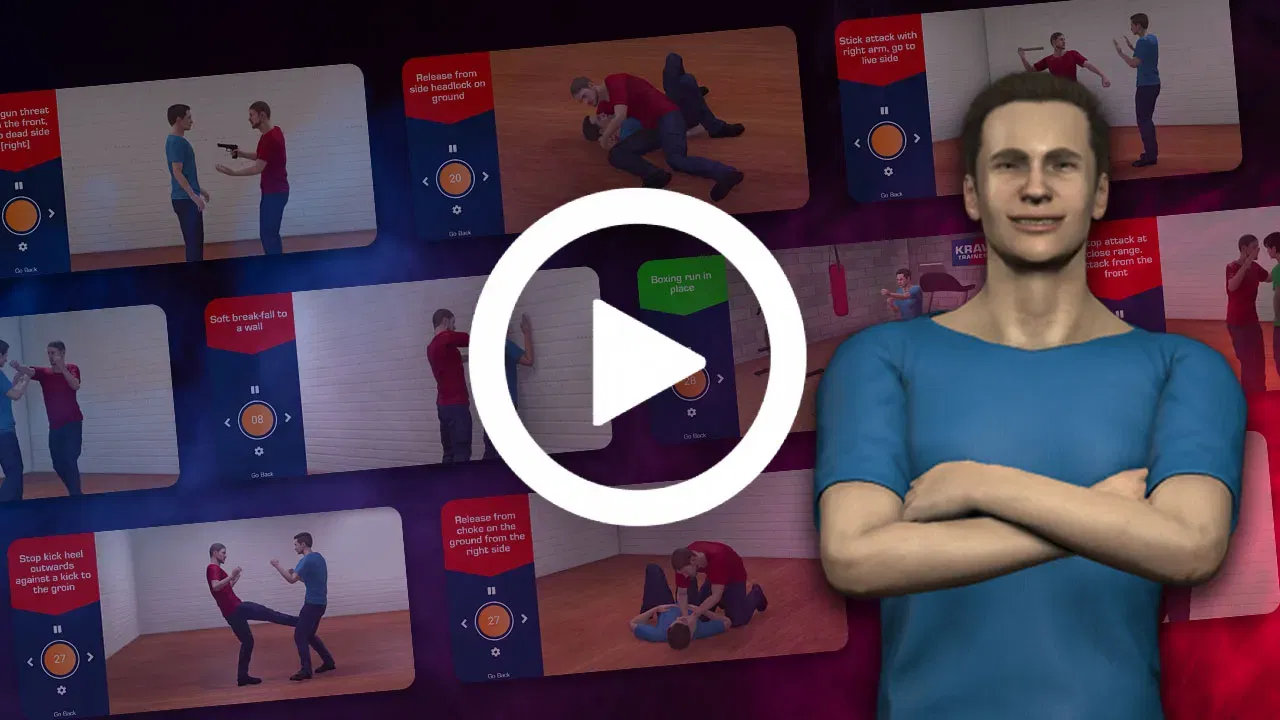 With the app you can practice the Krav Maga techniques (that you should already master for your level) in a playful way. Instead of a boring list with names of techniques, you are now presented with the attacks in a simple animation with text and speech, in random order.